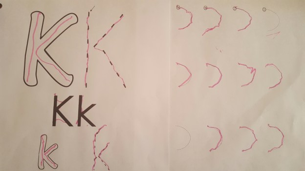 Esta semana estuve trabajando con mi niña de 3 la letra K. Fue muy sencillo porque para su edad me gusta que sea rápido para que no se distraiga después de un rato.