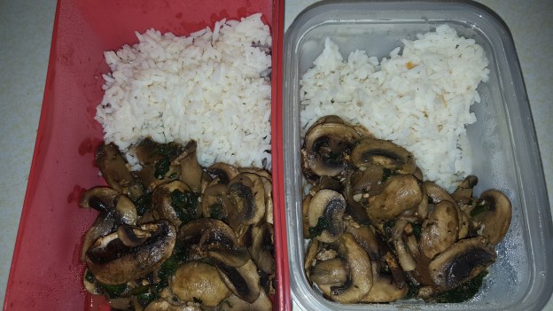 In the evening I cooked spinach and mushrooms, very simple, and some rice.