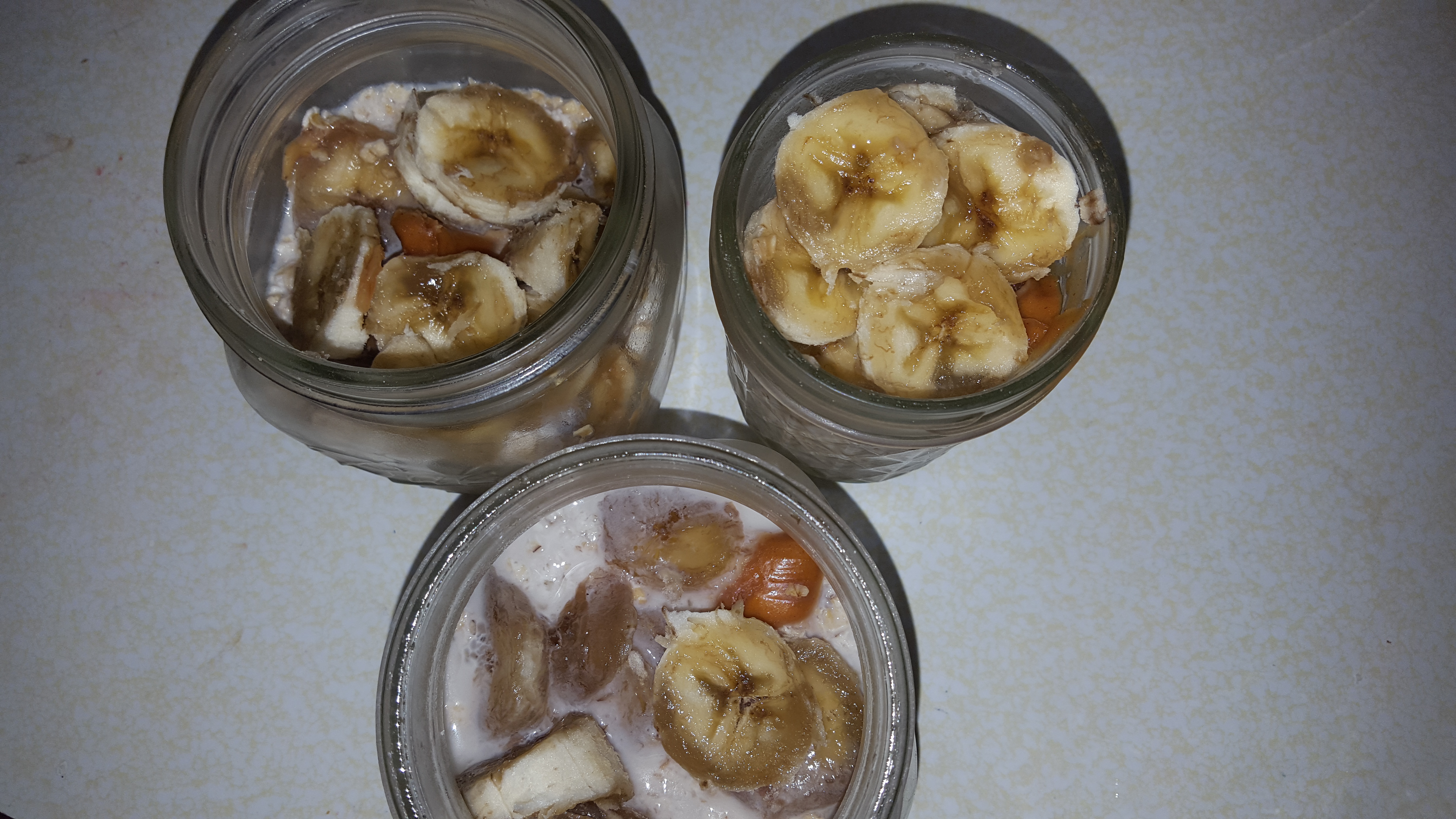 Sunday morning I prepped oatmeal in jars (I love mason jars), oatmeal, almond milk, peanut butter and banana.