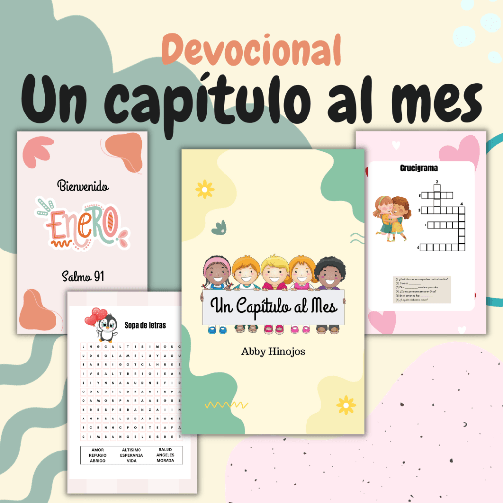 Además de los devocionales encontrarás páginas para colorear, sopas de letras y crucigramas.
