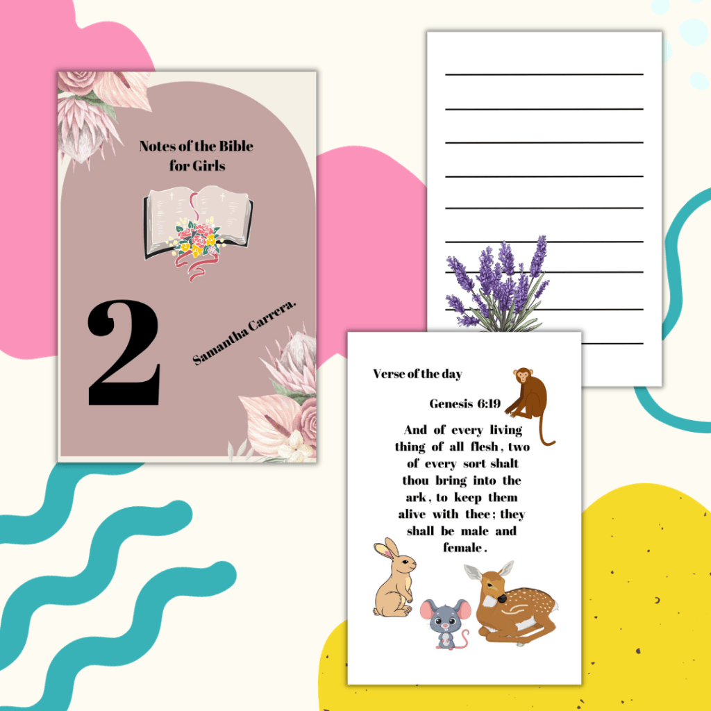 Mi hija de 12 años está aprendiendo a utilizar Canva y ha creado un hermoso diario de notas bíblicas en inglés.